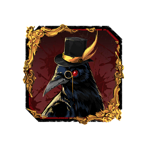 Eine Krähe mit Zylinder und Monokel, die sich unter die Menge mischt.