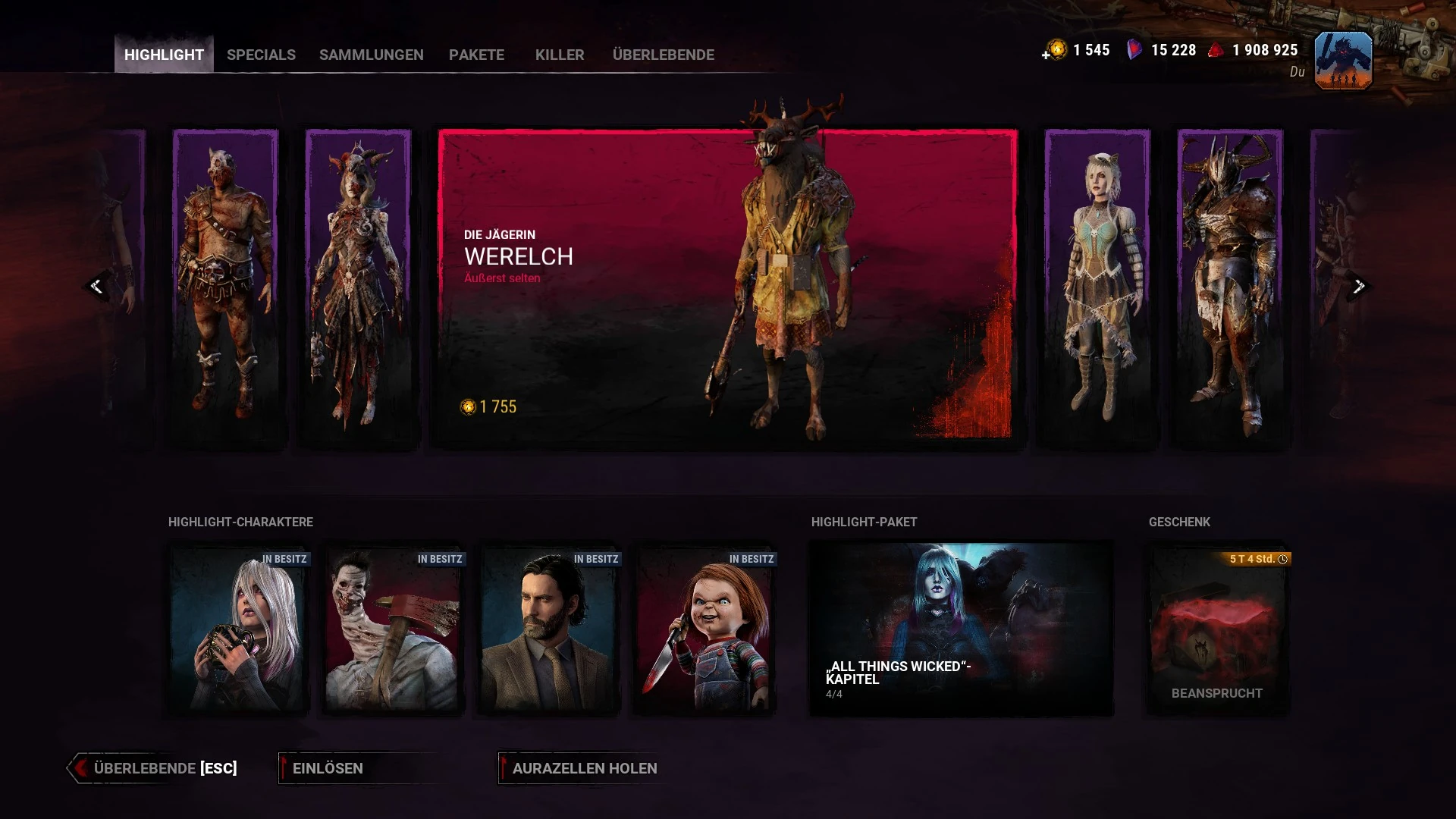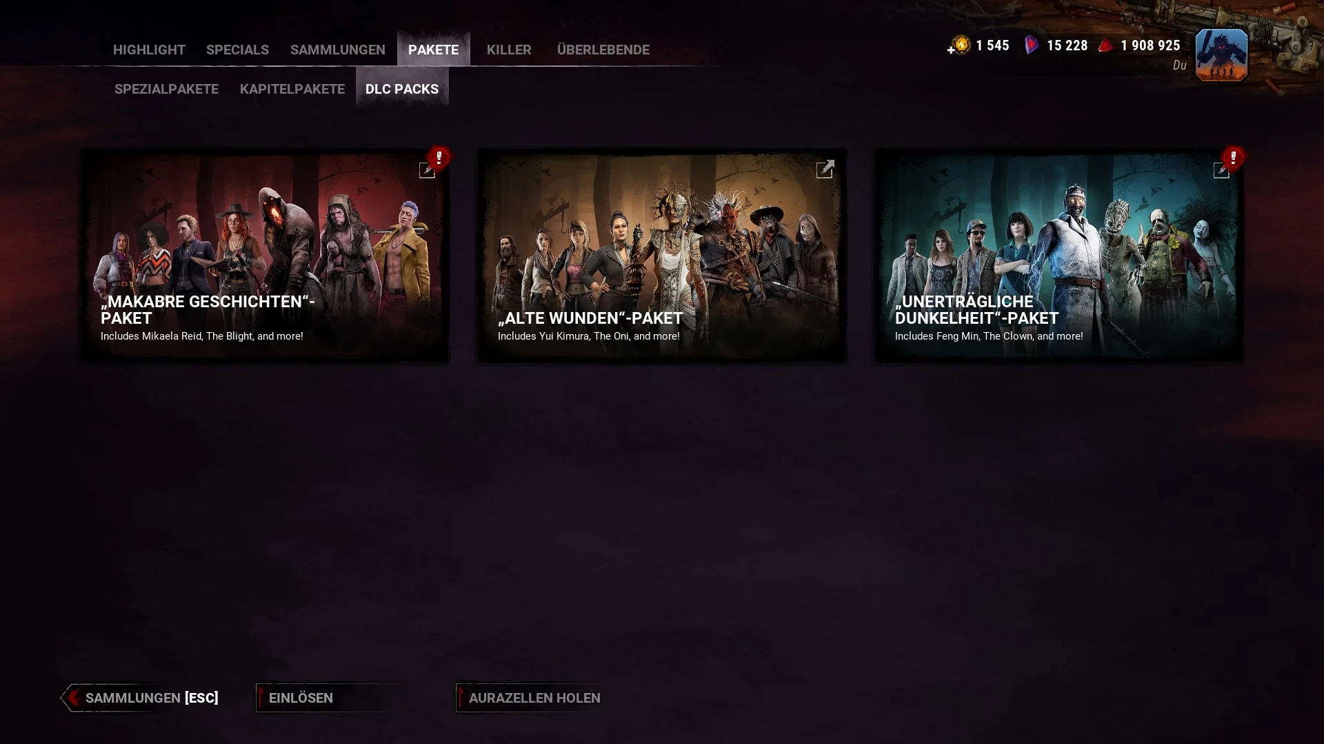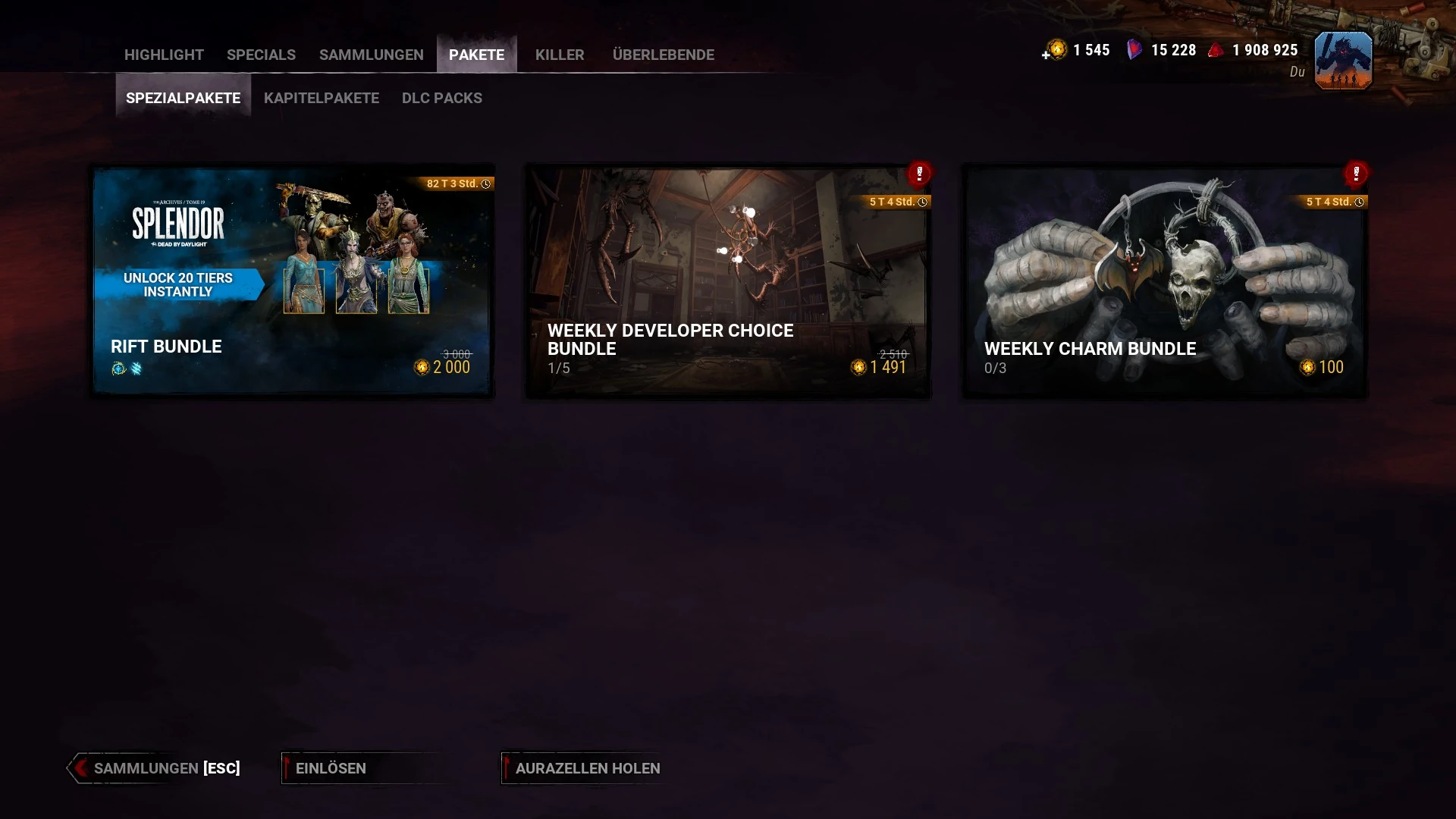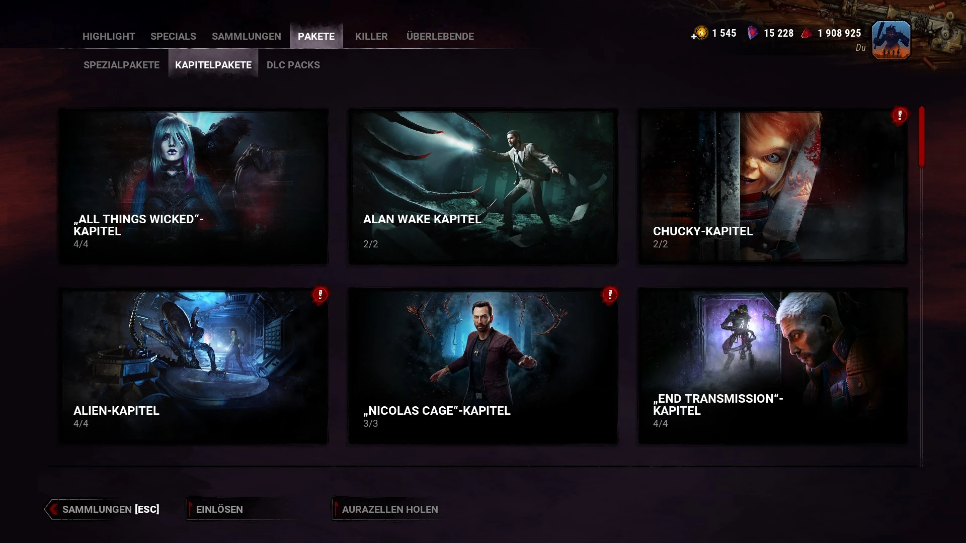 Hier werden spezielle Bundles, die freigeschaltet werden können, Kapitelpakete und die neuen DLC-Packs vorgestellt. Die Bundles können geöffnet werden, um ihren Inhalt zu prüfen, bevor sie freigeschaltet werden, was bei den DLC Packs noch nicht der Fall ist.