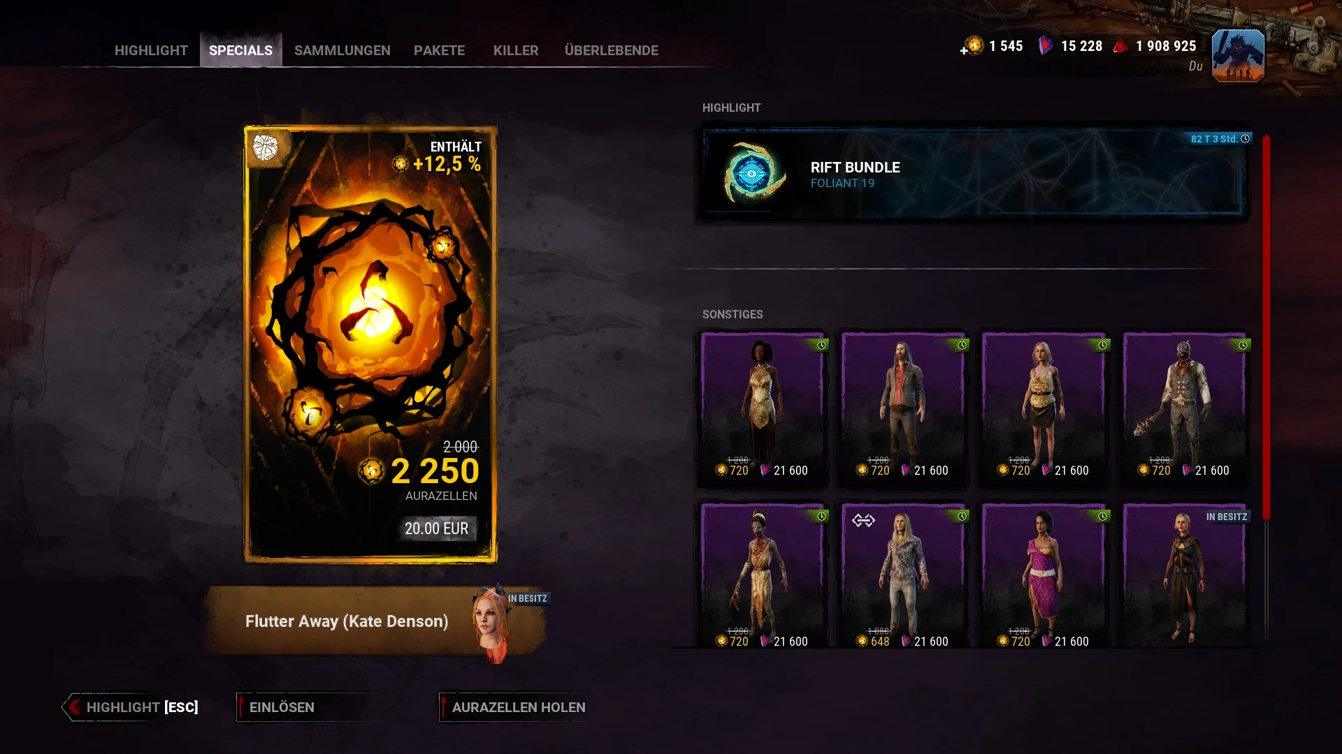 Bei den Sonderangeboten handelt es sich in der Regel um ein Aurazellen-Paket mit einer speziellen Freischaltbelohnung sowie um das Spalt-Paket, mit dem der Premium-Pass und die ersten 20 Stufen des aktuellen Spalts freigeschaltet werden.