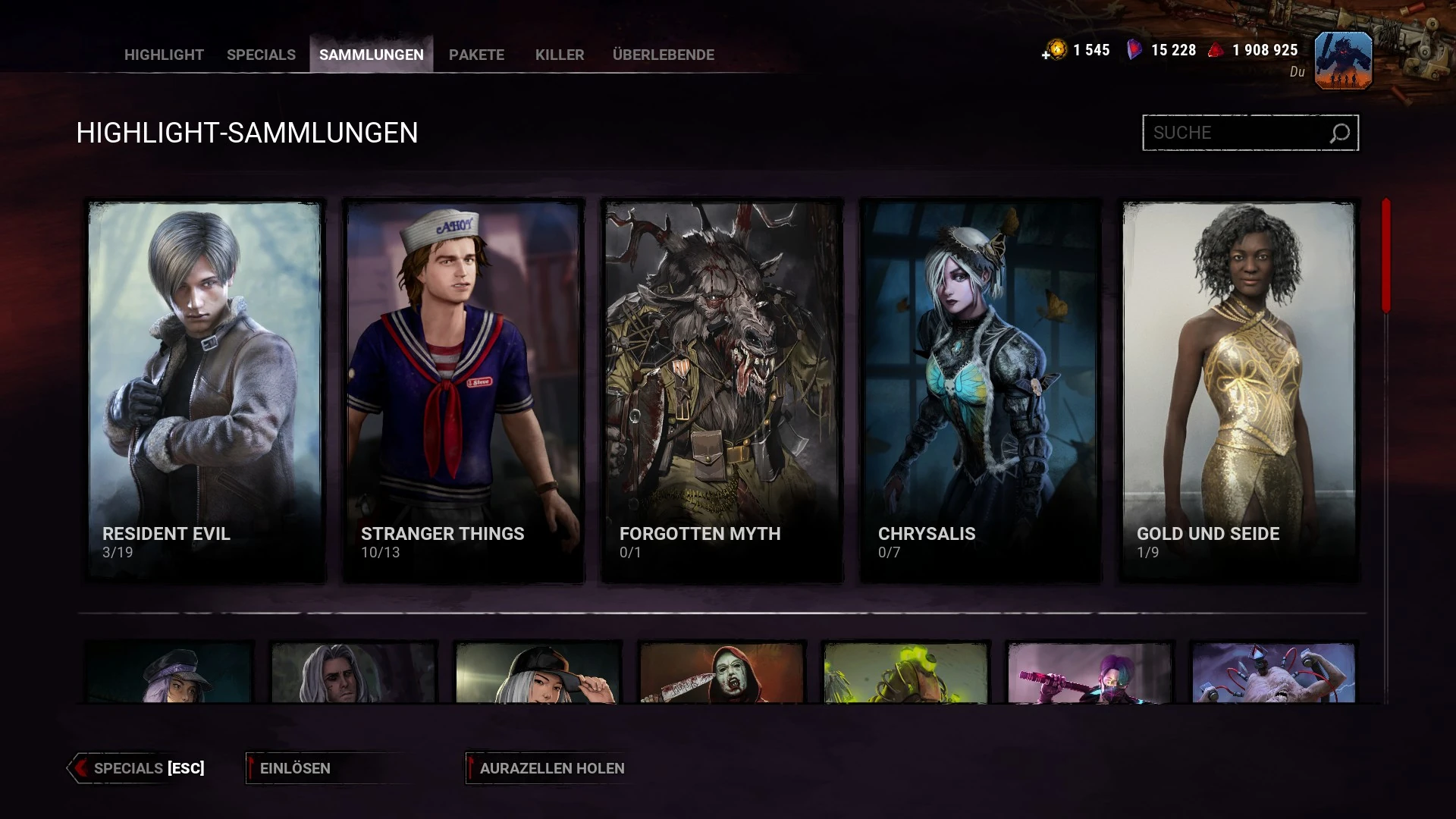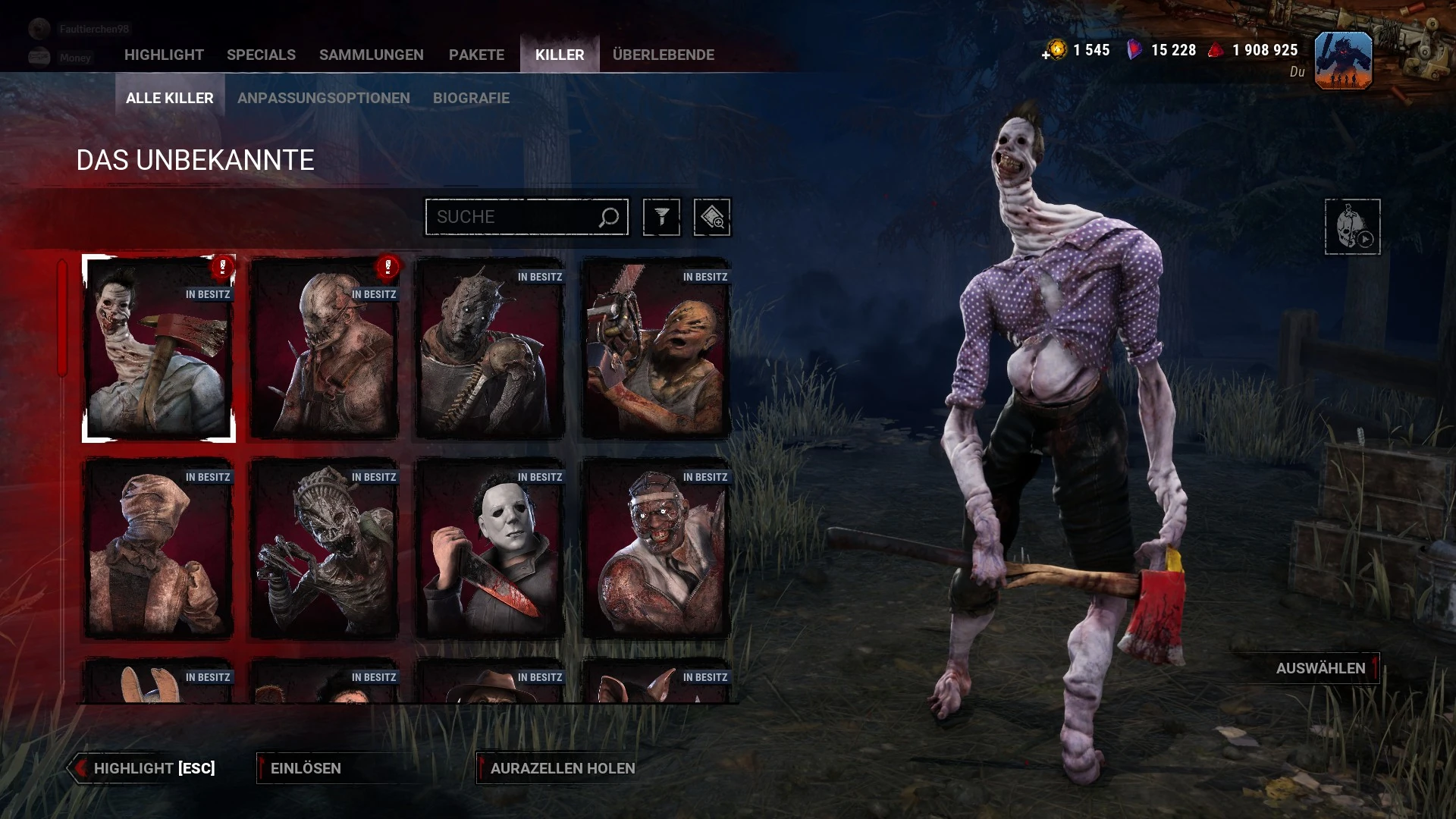 In diesem Abschnitt werden alle derzeit verfügbaren Killer und ihre Outfits vorgestellt. Außerdem können die Spieler hier eine Vorschau ihrer Talente sehen.