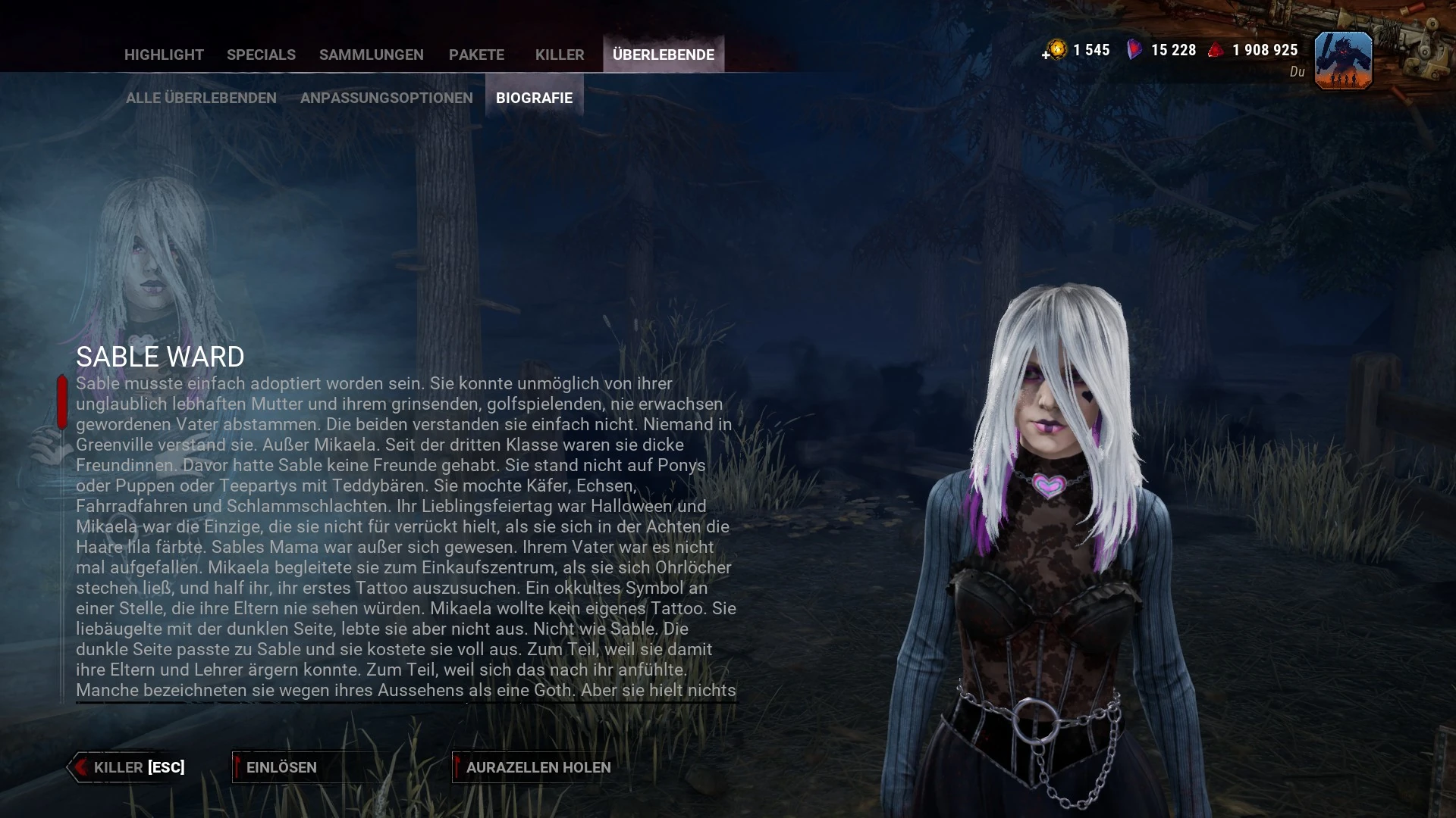 In diesem Abschnitt findet sich die Hintergrundgeschichte des aktuell ausgewählten Killers.