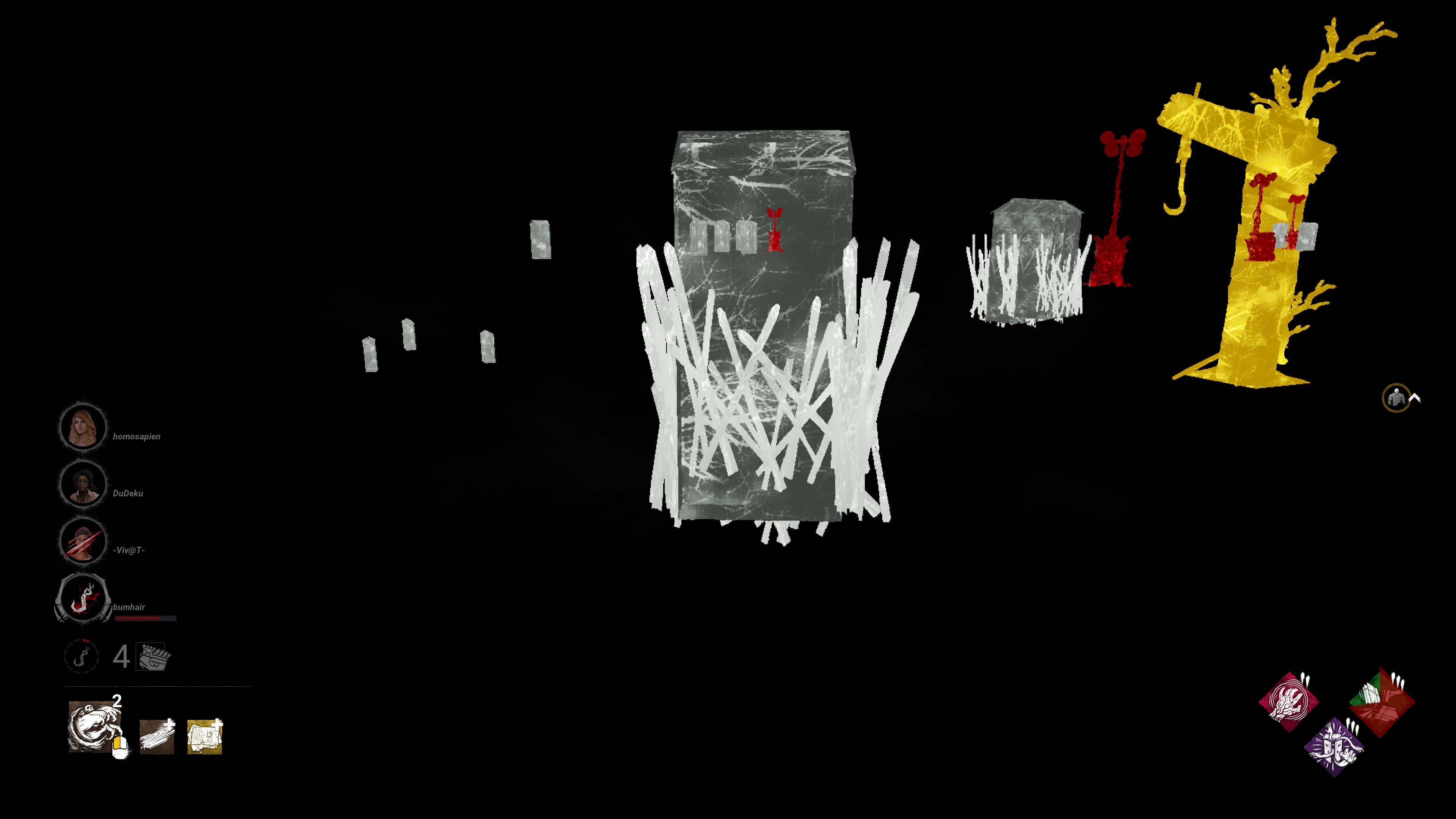 - Indirect Nerf: increased the Maximum range at which Survivors are visible to other Survivors during Nightfall from 24 metres to 54 metres.