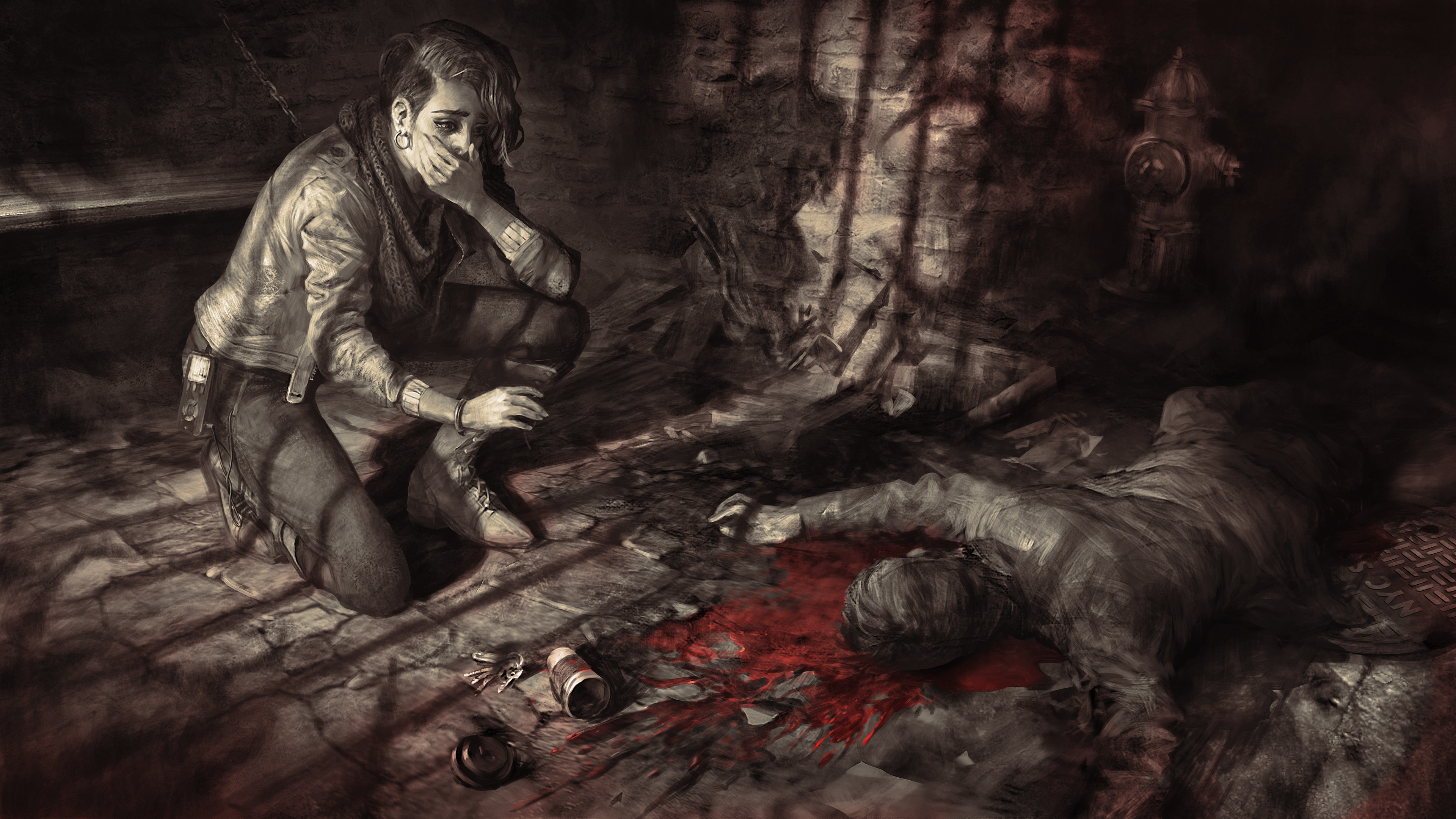Metió la mano. Tocó algo de metal, frío y astillado. Lo extrajo... Era una vieja y oxidada llave inglesa. Un sudoroso escalofrío le recorrió la columna. Bajó la mirada. A sus pies yacía un hombre empapado en sangre con las extremidades retorcidas y los oscuros ojos en una espeluznante mueca de terror: los ojos de su padre. Un charco de sangre carmesí inundaba el negro pavimento. Una niebla negra comenzó a llenar la celda y Zarina, paralizada, cerró los ojos para expulsar de su mente aquellas horripilantes visiones.