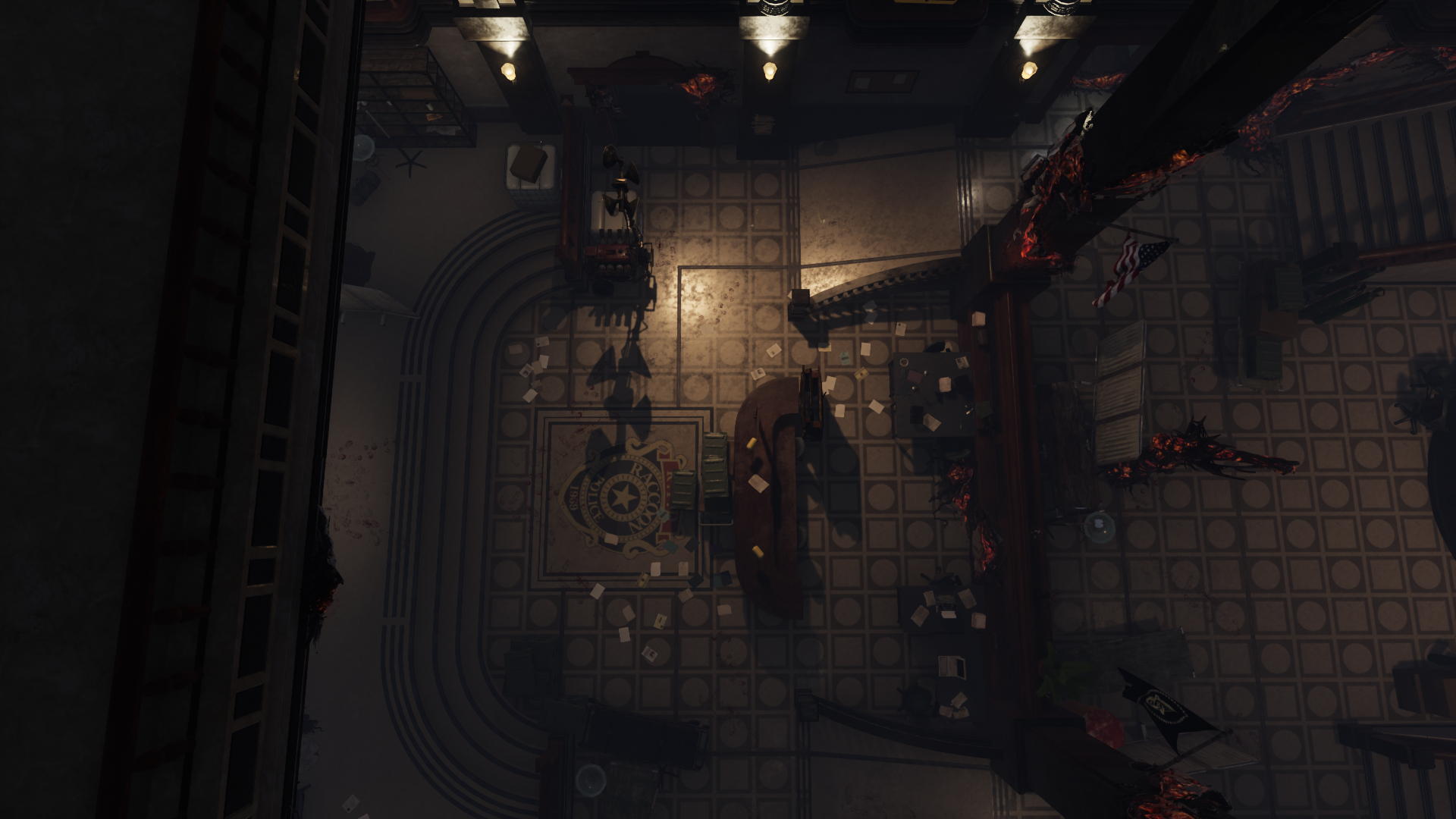 L'odore del sangue e degli arti infetti permeava le mura in cemento della stazione di polizia di Raccoon City. L'edificio, un tempo museo d'arte, venne convertito in un distretto nel cuore della città. Ma non appena il male vi si insediò, la stazione espose la sua ultima terrificante mostra: cadaveri che affollavano corridoi strettissimi, sangue che imbrattava le finestre e carne marcescente lungo le rampe di scale.