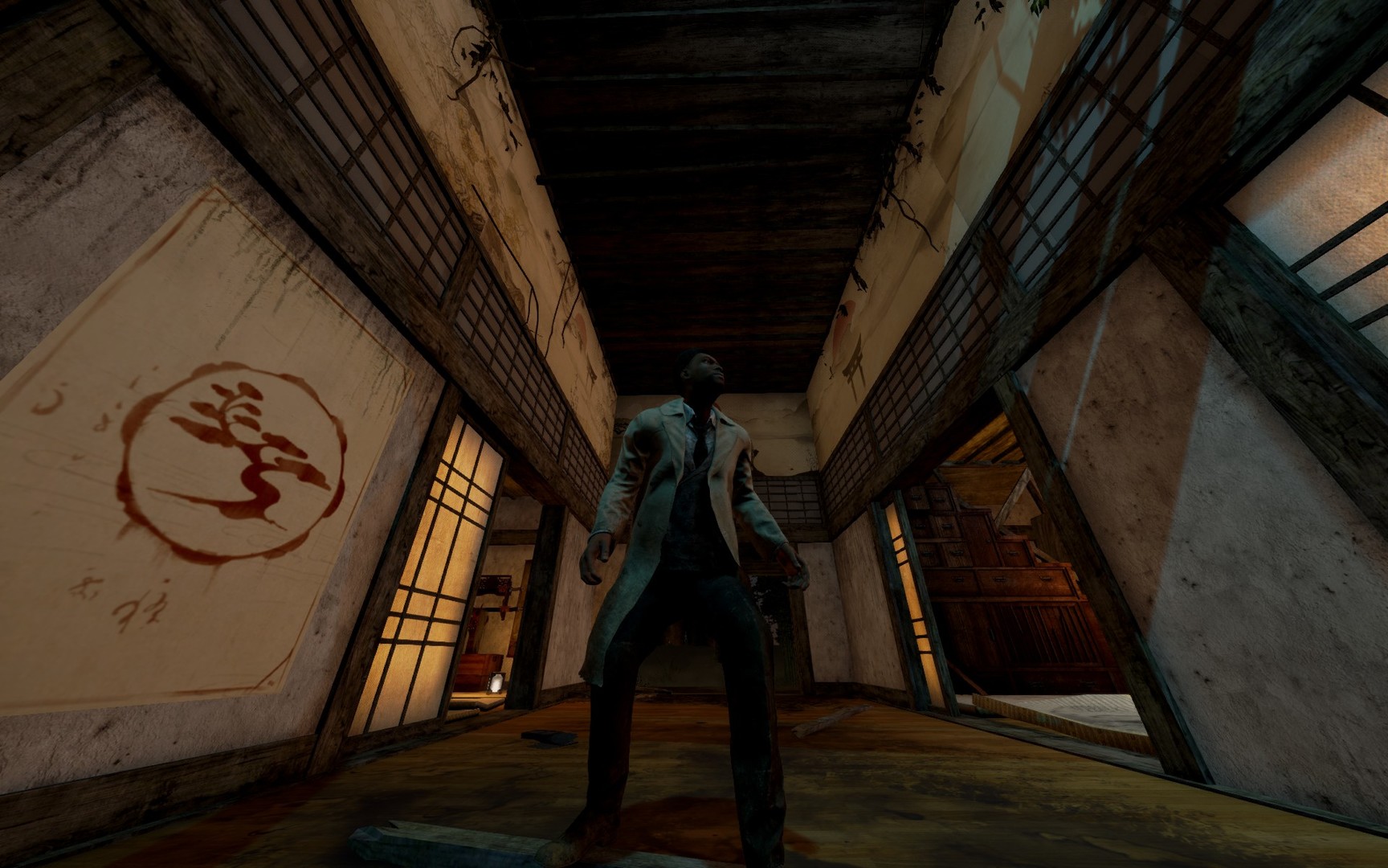 While the Yamaoka estate displayed a glorious past, the family residence was falling apart. The house needed numerous renovations to remain habitable. The last generation of the Yamaoka family were facing troubled times. Their finances were dire and the situation worsened when the daughter started university, just a few months before the mother became ill. Shouldering both university fees and hospital bills, the father worked past exhaustion. To keep a roof over their heads, he profaned their legacy. The walls of their ancestral home were sealed with mouldy materials for a cheap fix. As the house was stripped of its integrity, an old anger was awakened.
