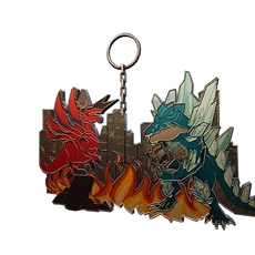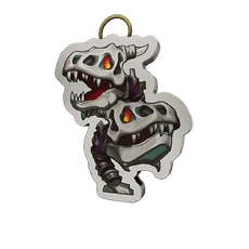 Fire-breathing dinosaur skulls stacked atop one another.