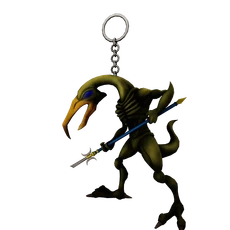 A warrior serving at Death's behest, armed with spear and beak.