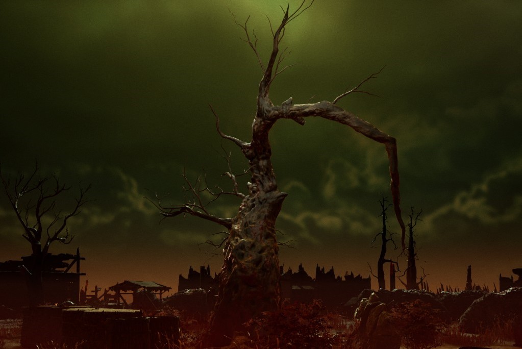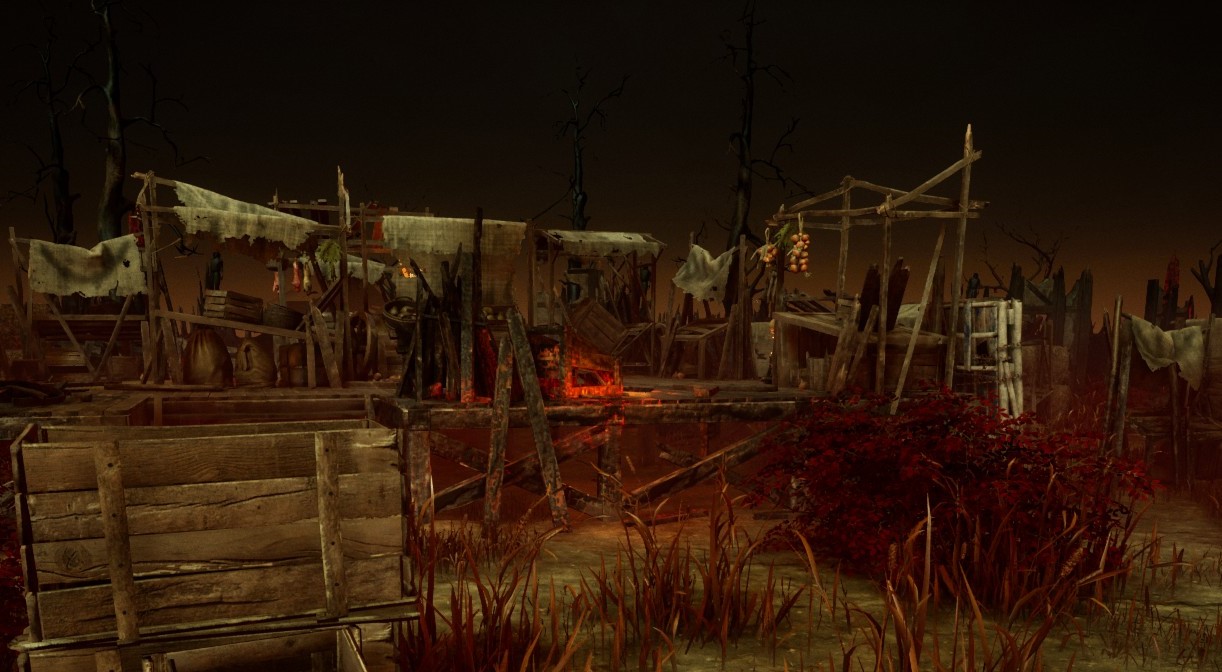 恶灵留下并扭曲了这个古老的村庄,它的瓦砾永远在阴燃。一个巨大的议事厅矗立在它的中央,尽管伤痕累累,但依然立艇。年久失修的棚屋随处可见;余烬的霹雳声不断在停歇的讲述著这最村庄的苦难